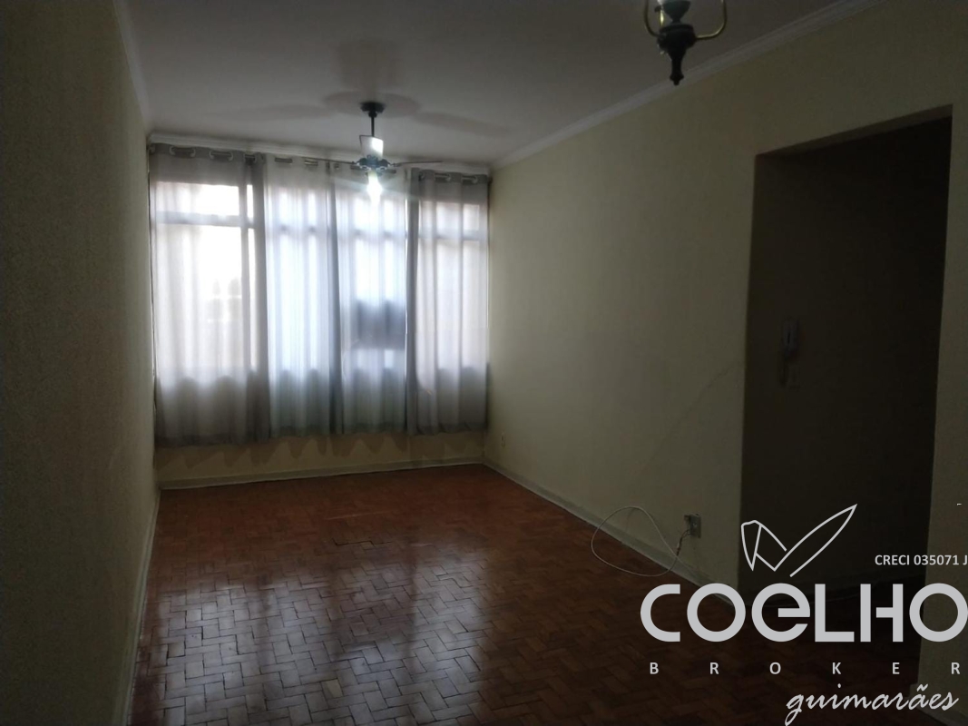 Apto. com ampla sala (piso em tacos de madeira), três dormitórios (piso em tacos de madeira) c/ armários, roupeiro, banheiro social, copa/cozinha (com armários), lavanderia, quarto e banheiro de serviço - uma porta social para sala e outra de serviço para cozinha.