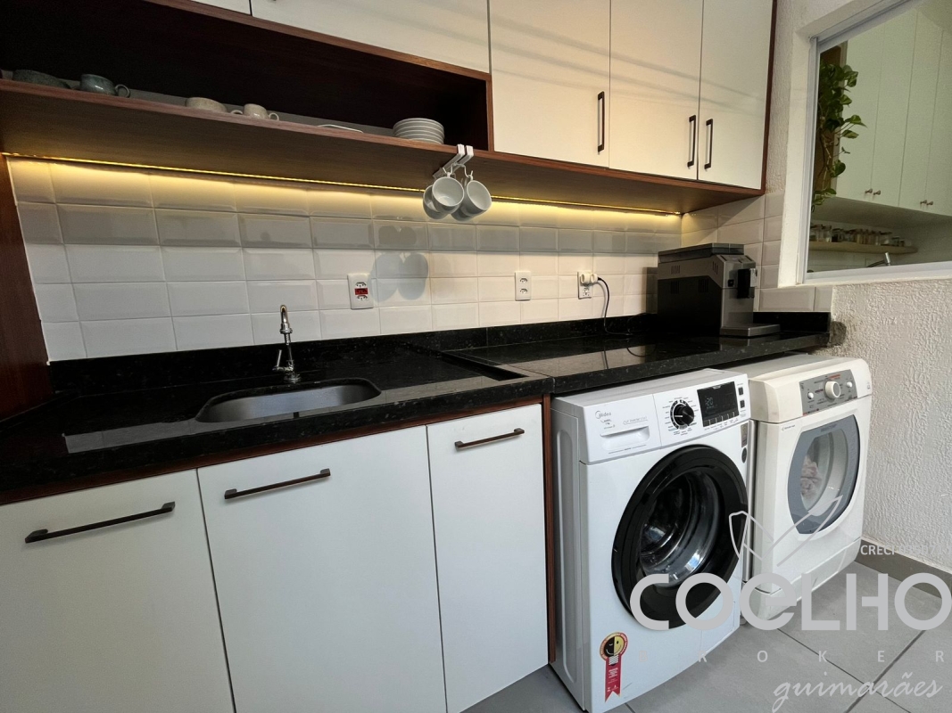 Possui 2 quartos com suíte, 1 lavabo, cozinha com armário planejado, sala Área gourmet com lavanderia e 2 garagens.